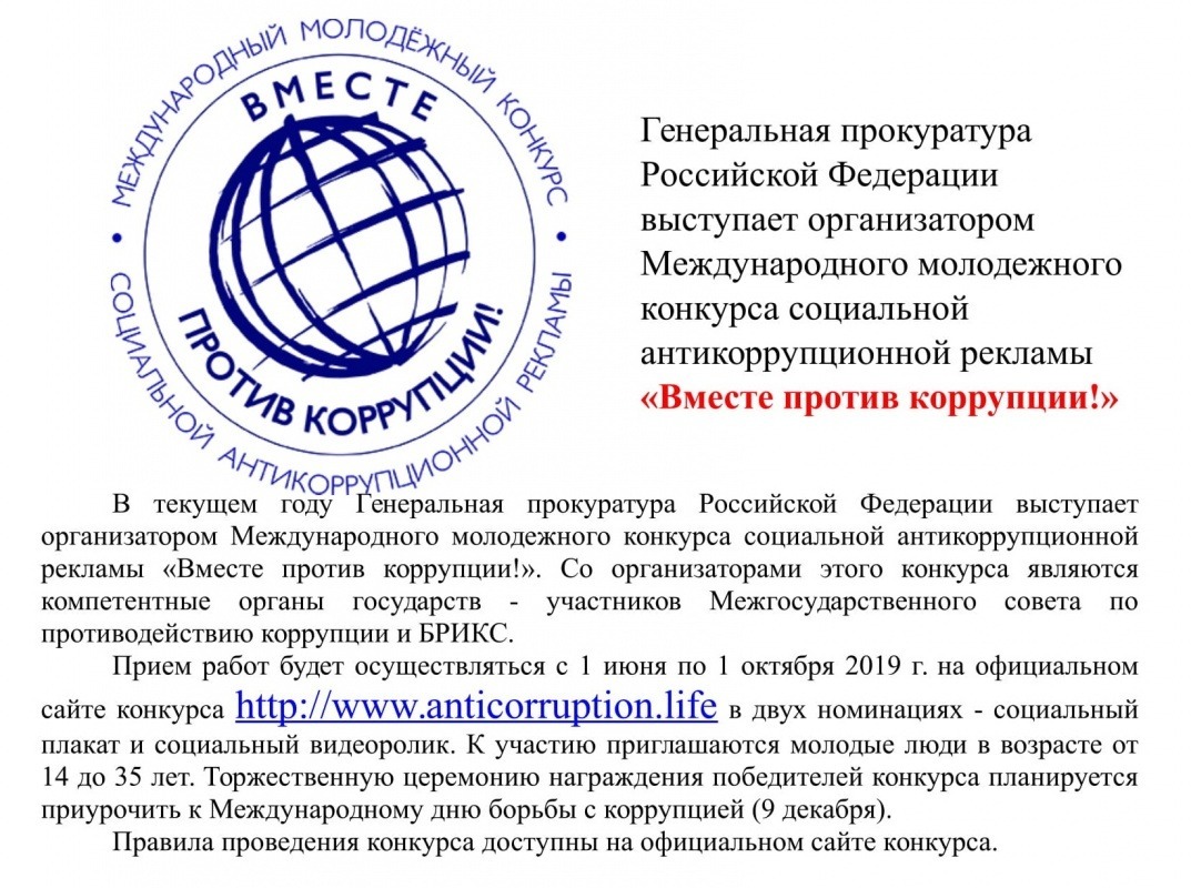Международный молодежный конкурс социальной антикоррупционной рекламы «Вместе против коррупции!»